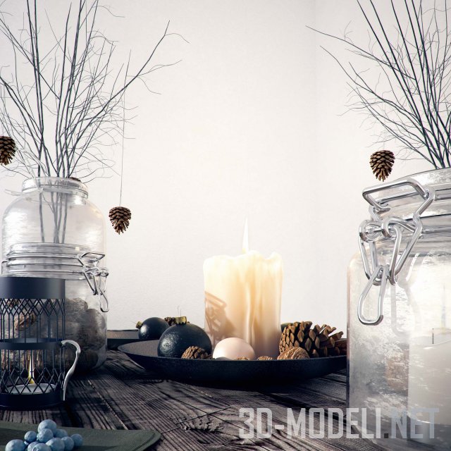 Декоративный набор для современного и классического интерьера, отличный вариант, который подойдет в качестве украшения. Комплект со свечами, черникой, шишками, банками и тарелками. Все текстуры собраны в архиве.