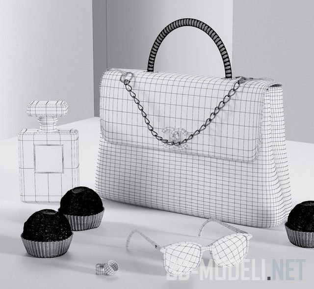 Элегантный набор для женского пространства. Содержит сумочку от Chanel, конфеты «Ferrero Rocher», солнцезащитные очки и парфюм. Пара золотых колец идеально дополняют комплект аксессуаров.