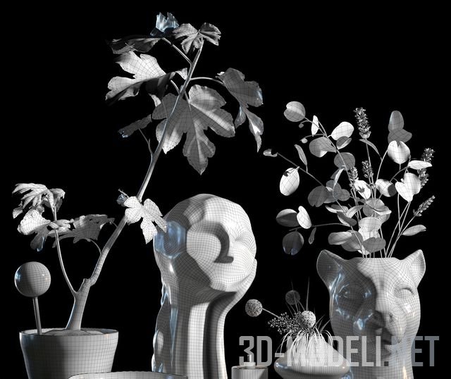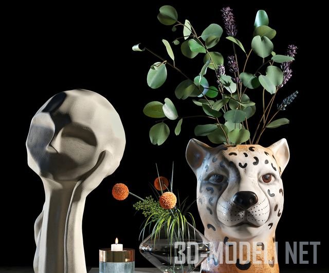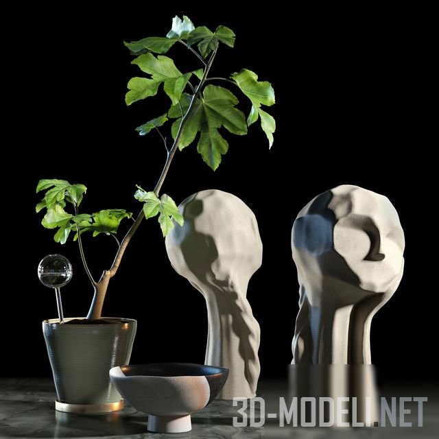 Комплект элементов для декорирования интерьера, в который входят зеленые растения, вазы, свечи. Акцентной деталью набора служит ваза Gepard (доступна в нескольких размерах) от Posh Living и скульптура KRISTIINA.