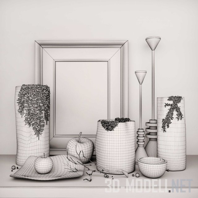Элегантный набор интерьерных аксессуаров, который можно смело назвать «Благородное золото». В наборе картина, три вазы, два яблока, два подсвечника, ветка, пиала, блюдо.