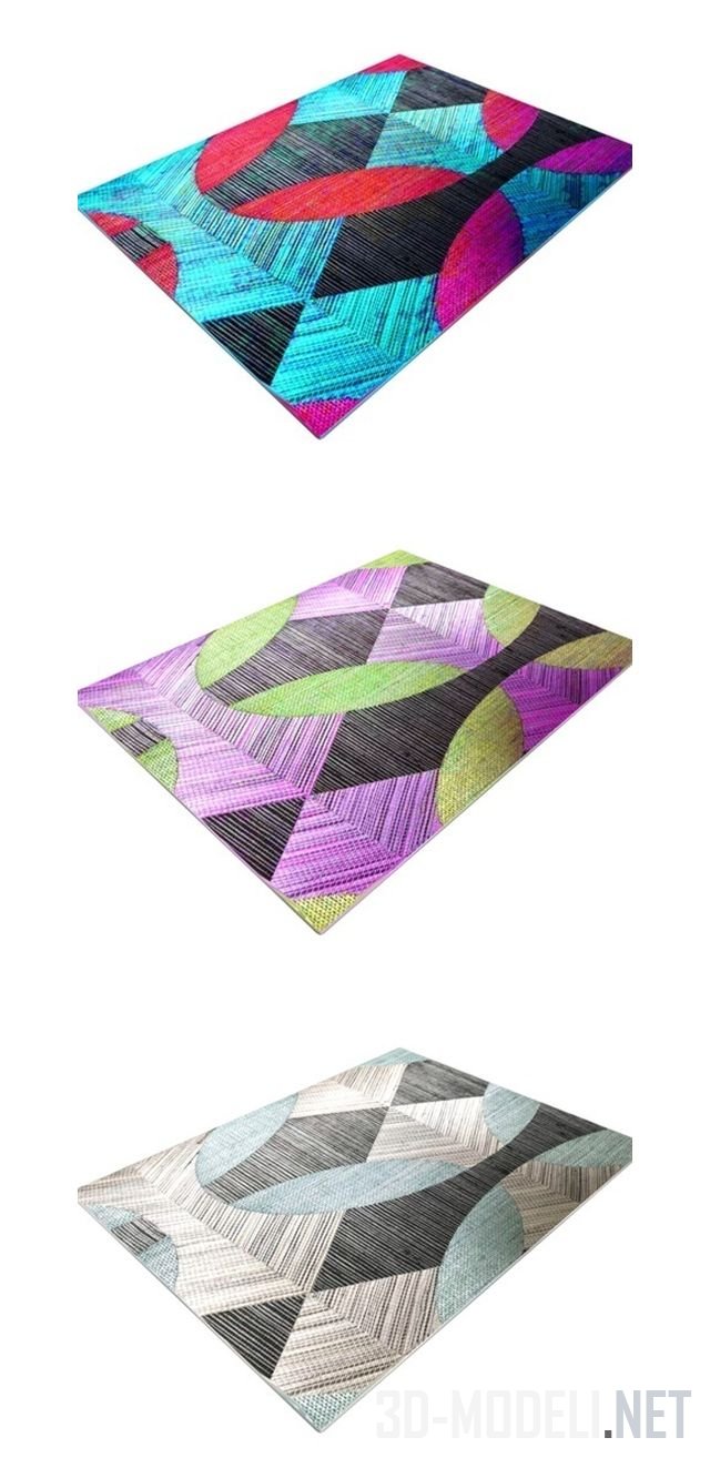 Завершающим штрихом в украшении интерьера станет яркий, акцентный ковер. В архиве находятся три варианта текстур для ковра, от очень яркой до сдержанной, но все равно заметной и жизнерадостной. Ковер прямоугольной формы.