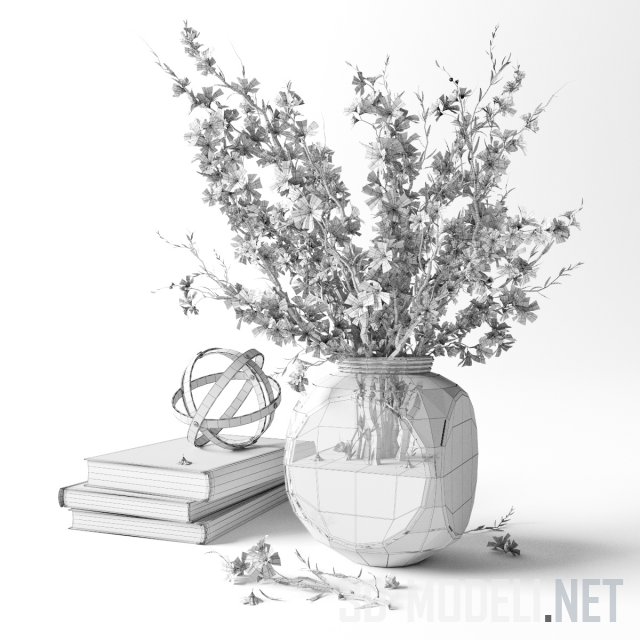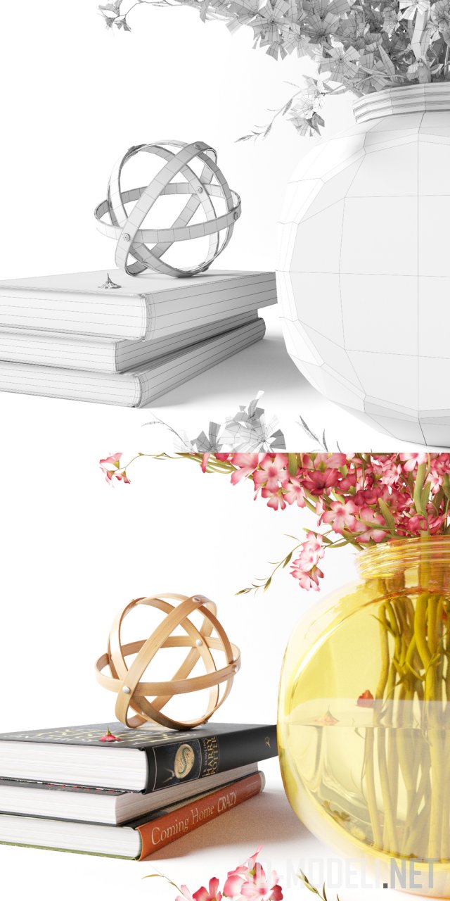3D-Модель – Разные предметы интерьера – Цветы в желтой вазе, с книгами
