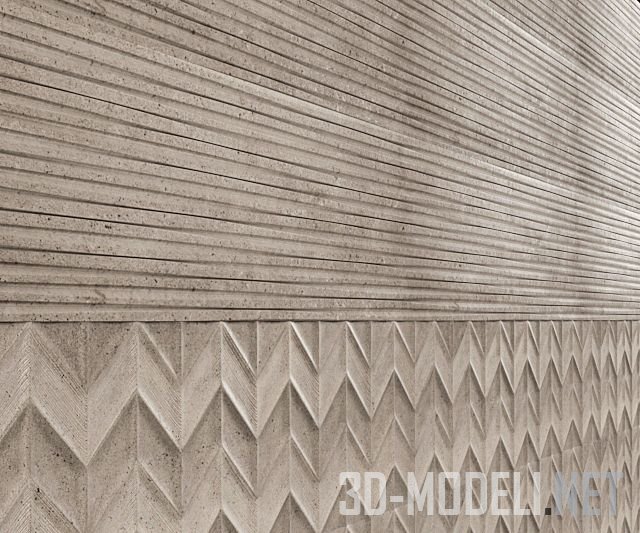 Керамическая плитка с легкими этническими мотивами – Porcelanosa Dover Spiga Dover Modern Line. Представлена плитка двух цветов: песочного и оттенков светло-серого («сухой бетон»). Фактурный рисунок двух видов: в виде рустикальных горизонтальных канавок и в виде орнамента из ромбов, образующих зубчатые ряды. Габариты плитки 31,6 х 90 см.
