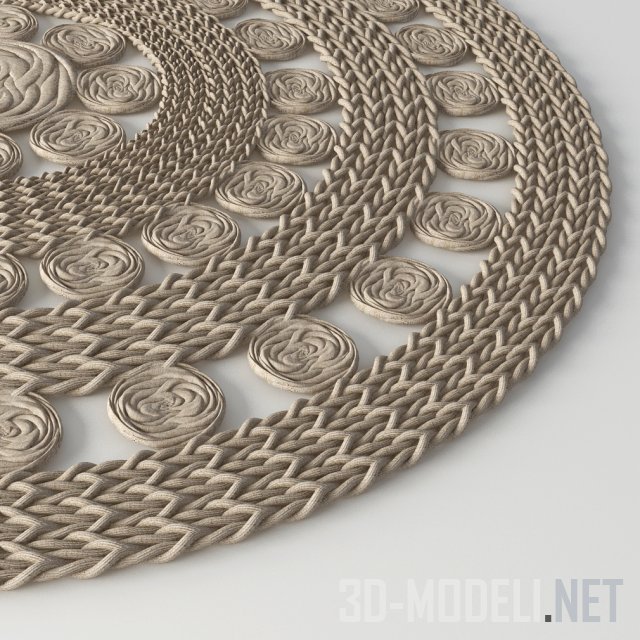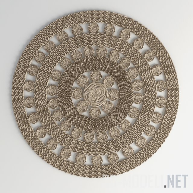 Круглый коврик из плетеного ротанга светло-коричневого цвета, Это коврик с хорошим рисунком, достаточно современного вида, легко моется и устойчив к скольжению. Размер ковра 160 см.
