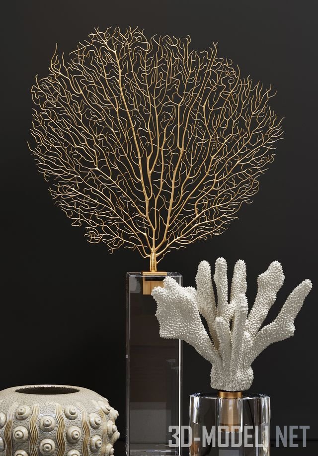 Декоративный набор на морскую тематику, содержит разные вариации кораллов (5 видов). Комбинируя кораллы с вазами, свечами и другими элементами можно создать интересную интерьерную композицию.