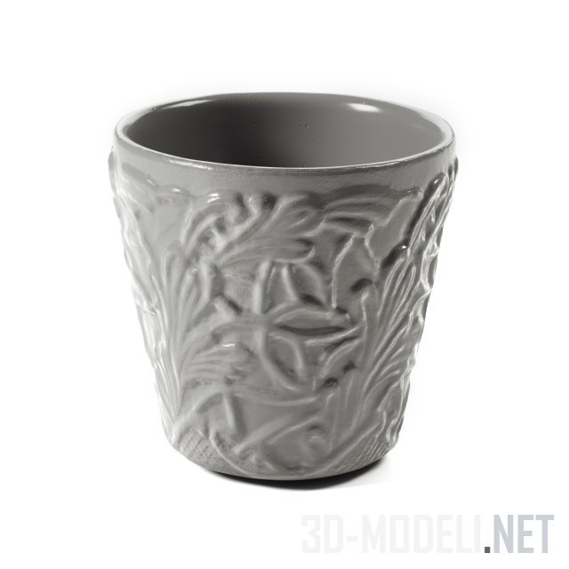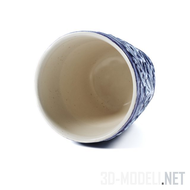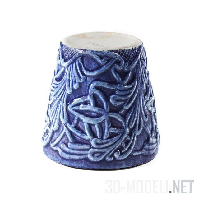 Предмет функционального декора, небольшая емкость Tealight от Mateus. Стаканчик синего цвета с лепным узором на растительную тематику. Можно использовать в интерьере как декоративное кашпо для горшка с растением или в перевернутом виде как подставку.