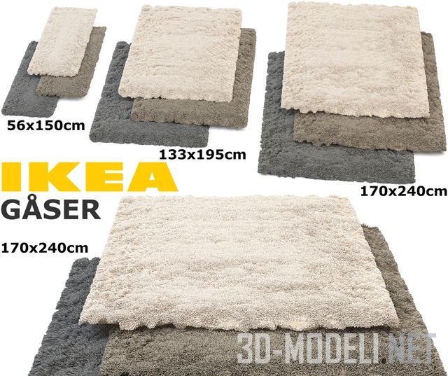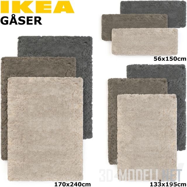 IKEA GASER (GOSER), ковры для современного интерьера. Представлены три варианта цвета: белый, бежевый, черный. Ковры имеют высокий мягкий ворс. У каждой модели три размера.