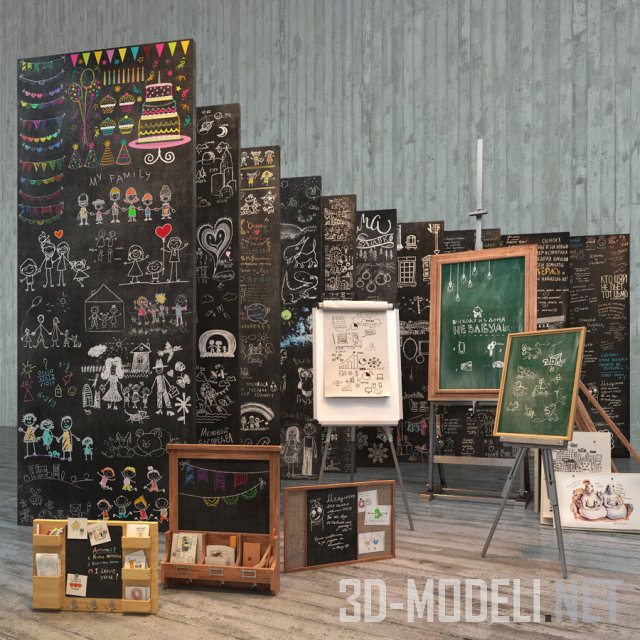 Набор для поверхностей (меловых и грифельных досок) с различными изображениями. Рисунки мелом смотрятся очень реалистично. Доски подойдут для использования в детских комнатах, кафе и пр.