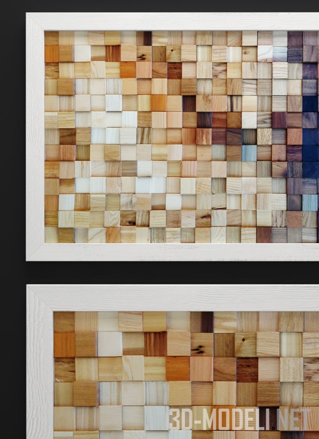 Вариант настенного декора. Абстрактное изображение собрано из брусков дерева, окрашенных в различные оттенки. Все вместе формирует абстрактное, стильно панно для украшения интерьера.