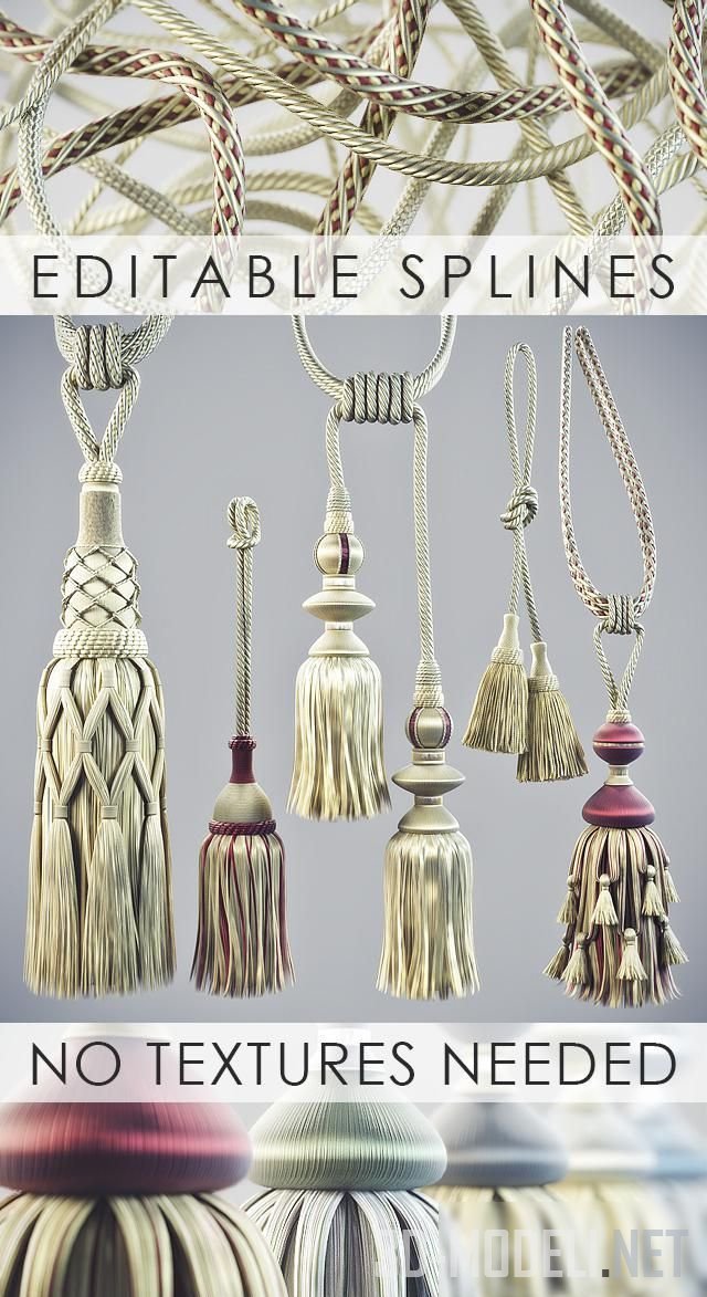 Большой комплект (5 вариантов) декоративных кистей для украшения интерьера. Текстуры не требуются.