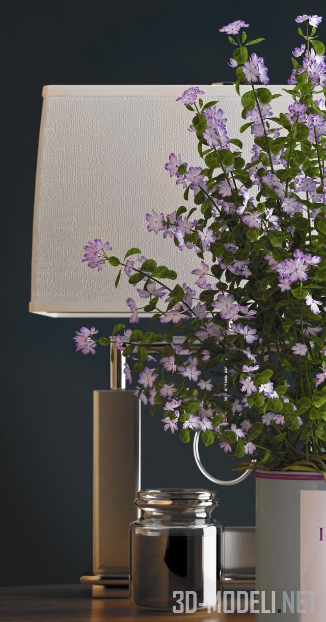 Потрясающий, очень реалистичный, нежный и милый набор декоративных элементов. В комплекте букет мелких розовых цветов в оригинальной вазе, настольный светильник с абажуром.
