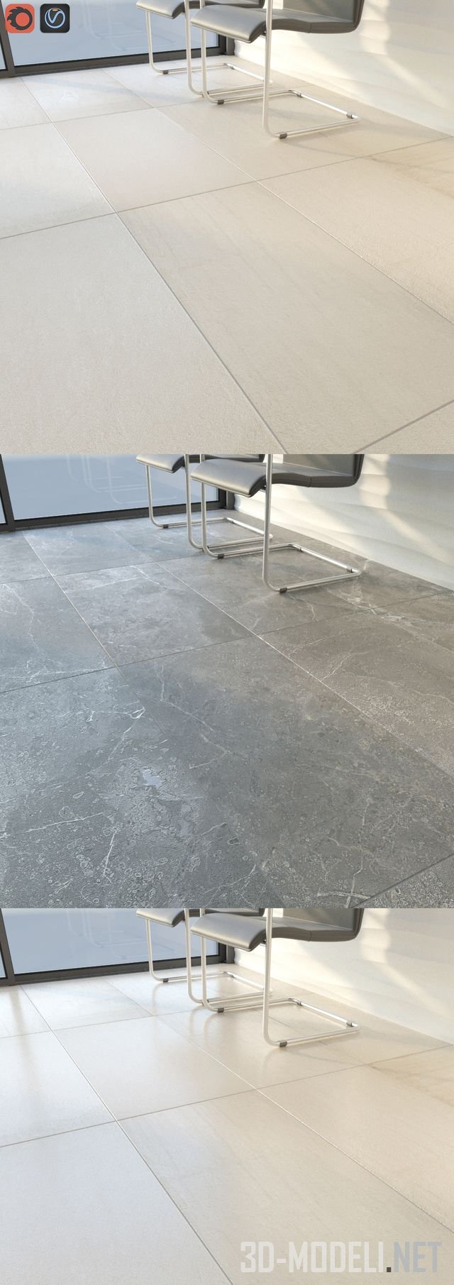 Два вида напольной плитки формата 45х90см с текстурами серого плитняка (AUGUSTA ANTRACITA) и светло-бежевого камня с невыраженной текстурой (HELIOS BEIGE). Представлены варианты с гладкой поверхностью и лопатированные. Толщина плитки 10мм.