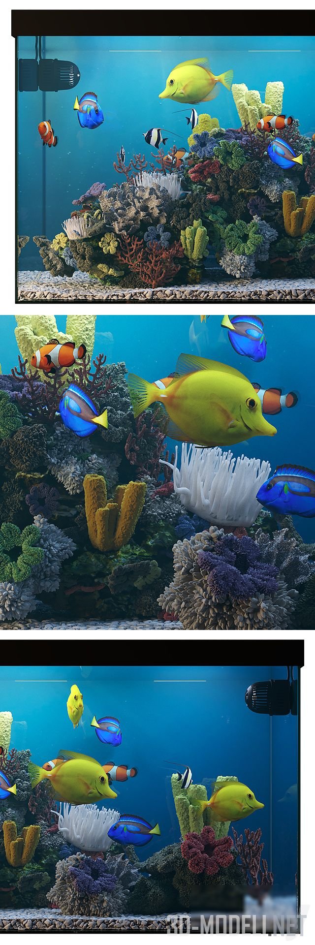 Яркий и привлекательный аквариум, оформленный на морскую тематику (рифы, кораллы, экзотические рыбки). Размер аквариума: 100 x 40 x 50 см.