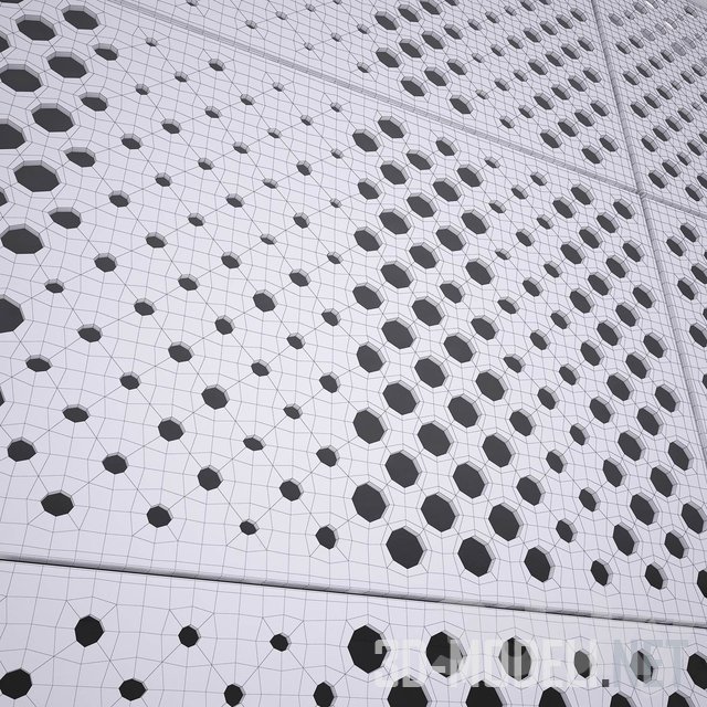 Наружная перфорированная панель для облицовки и декорирования фасадов. На светлой панели перфорацией изображается схематический рисунок стволов деревьев.
