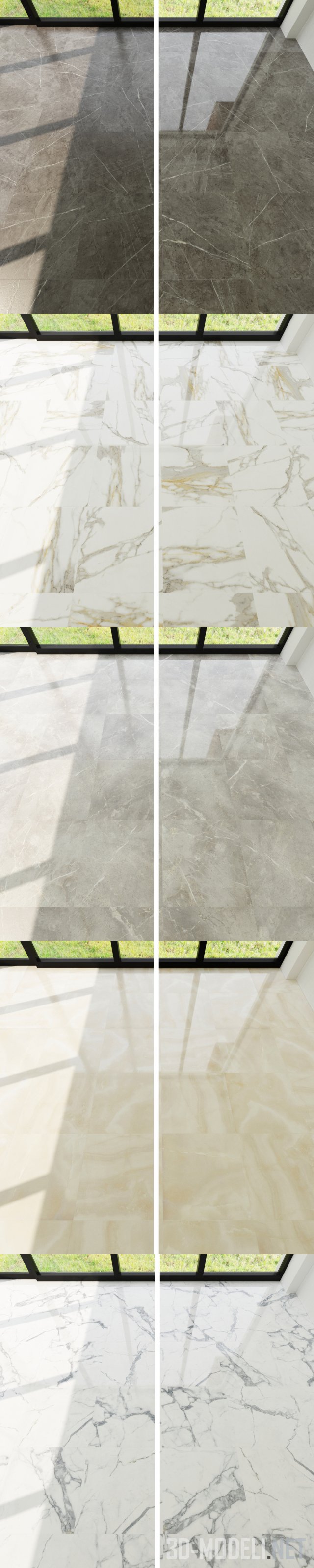 Пять вариантов керамогранита из коллекции CHARME EVO от производителя Italon ceramica. Поверхность плитки глянцевая, размер 60 х 60 см. Архив содержит следующие артикулы плитки: ANTRACITE, CALACATTA, IMPERIALE, ONYX, STATUARIO.