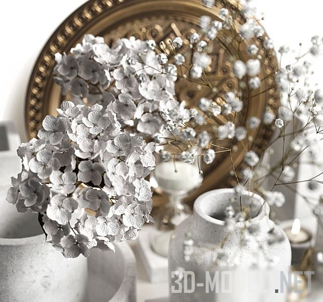 Вазы с гипсофилой и гортензией, другой декор