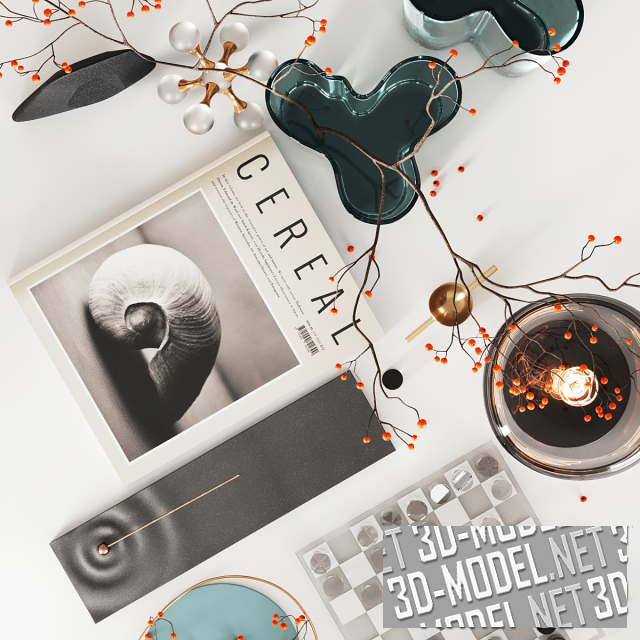 Лаконичный японский минимализм прослеживается в этом наборе декоративных аксессуаров. В комплекте вазы, книги, шахматы, настольная лампа, другие предметы. Все элементы отличает тонкость и изящество.