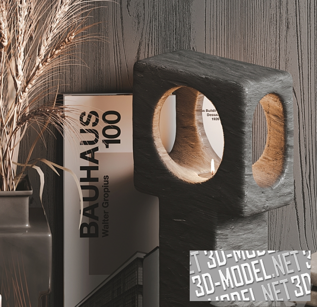 Ваза с пампасной травой, подсвечники, скульптуры и книги - все в этом наборе имеет благородный темный оттенок. Такая комбинация делает этот декоративный сет заметным и стильным.