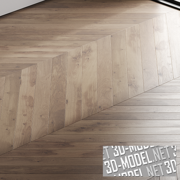 Четыре варианта укладки дубового паркета из длинных ламелей (230х19см). Варианты укладки: «обычная палубная» в разбежку, «прямая», «елочка», «французская елочка» с зарезкой торца.