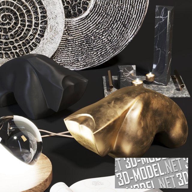 Комплект современного интерьерного декора, в котором выделяется бронзовая скульптура Bullish Star от Gardeco (дизайнер Marc Caelenberghe). Это всьма оригинальное произведение искусства, которое гарантирует элегантность и красоту в любом пространстве.