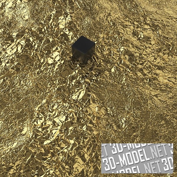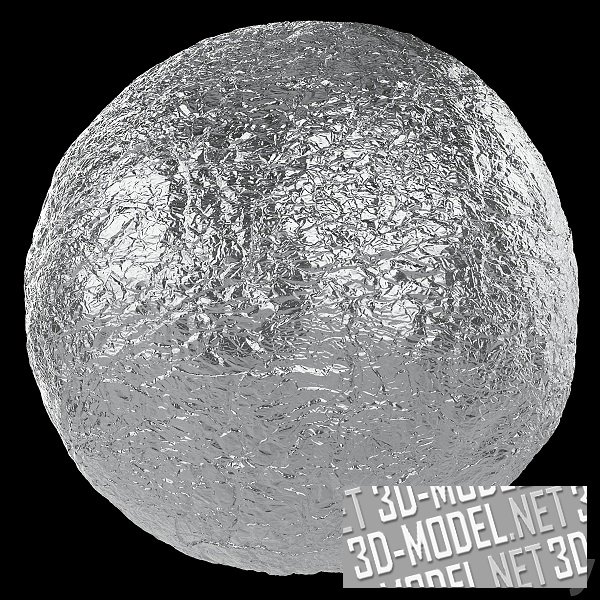 Фольга трех видов с разной степенью помятости, от слабой до сильной. Каждая фольга имеет 2 версии: 3d дисплейсмент 5-10 мм (для деталей) и 2d normal bump (для быстрого рендеринга). Также есть смешанный материал сразу из трех текстур с использованием композитных и шумовых масок, а также 2 версии 3d и 2d, в FBX нет смешанного материала из-за совместимости.