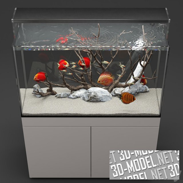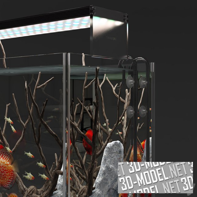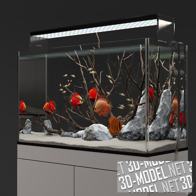 Аквариум с прямоугольным стеклом, что позволит наблюдать за рыбками с разных углов. Яркие и красочные дискусы отлично смотрятся в современном пространстве.