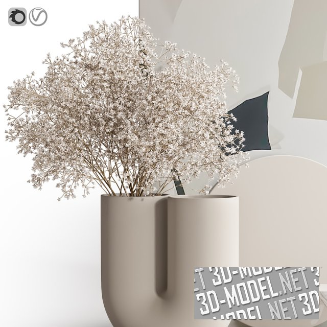 Эстетичная декоративная композиция, собранная в спокойной цветовой гамме. В наборе абстрактное изображение, дизайнерская ваза с сухим букетом, другие аксессуары. Трехмерная модель изготовлена реалистично, все текстуры присутствуют.