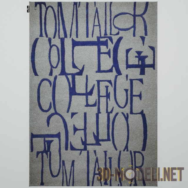 3d-модель ковра Tom Tailor. Серые буквы на синем ковре смотрятся очень стильно - такой дизайн отличается естественностью, живостью и непринужденностью. Все новые коллекции этого крупнейшего в Европе модного бренда предлагает выбор стильных современных дизайнов для пола. Каждый ковер Tom Tailor изготовлен из 100% шерсти, они мягкие на ощупь и очень удобные на ощупь. Также на каждом коврике для дальнейшего улучшения дизайна привлекательности и текстуры используется ручная резьба. Такой ковер - красивая, качественная модель, которая очень украсит любой современный интерьер.