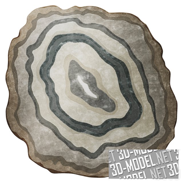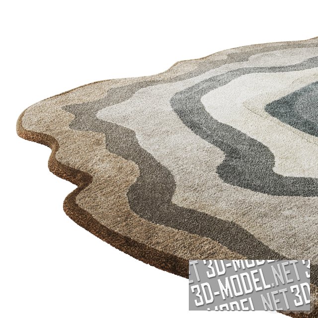 Современный криволинейный ковер Malcom от Visionnaire. Ковер выполнен в виде стилизованного поперечного среза дерева или спила агата в землистых тонах. Криволинейные концентрированные кольца охристых и серо-коричневых тонов оконтурены кромкой темно-коричневого цвета. Диаметр ковра - 280см.