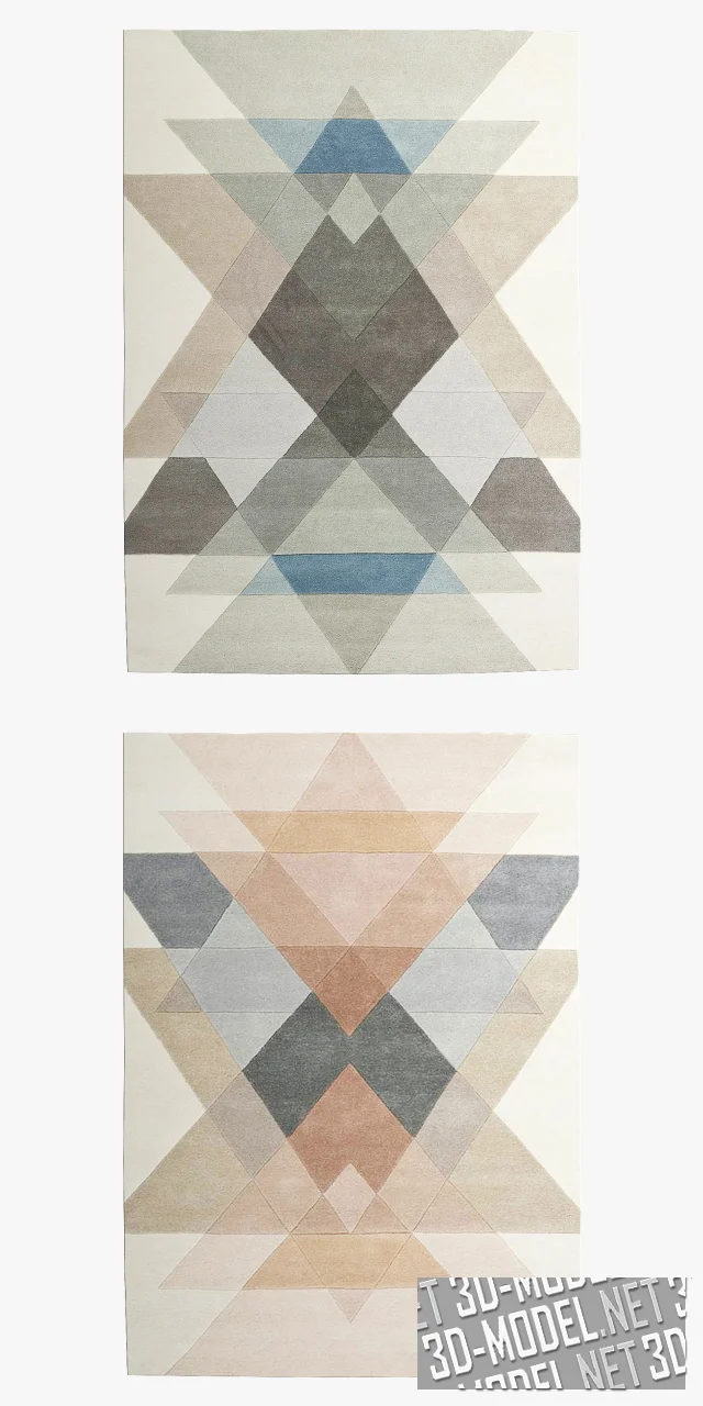 Современный прямоугольный ковер Freya с геометрическим рисунком, состоящим из пересекающихся многоугольников. Габарит ковра: 170х240х1см. Представлены два варианта, отличающиеся по цветовой гамме: холодных оттенков (в сочетании слоновой кости, фисташкового, бежевого, бледно-синего и коричневого) и в теплых тонах (по светлому фону многоугольники терракотовых, охристых, бежевых, сероватых тонов).