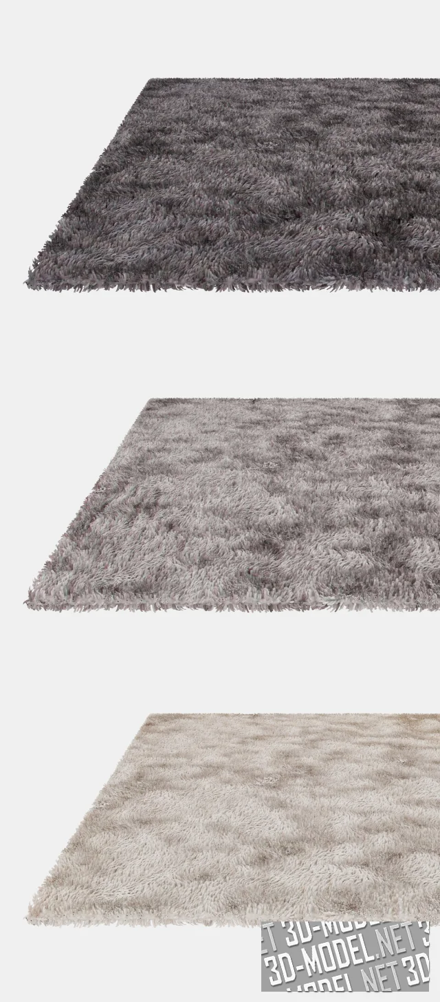 Современный длинноворсовый ковер из коллекции Marlowe от Jaipur Marlowe. Представлены три варианта цвета ковра: грязно-белый, серый и темно-серый.