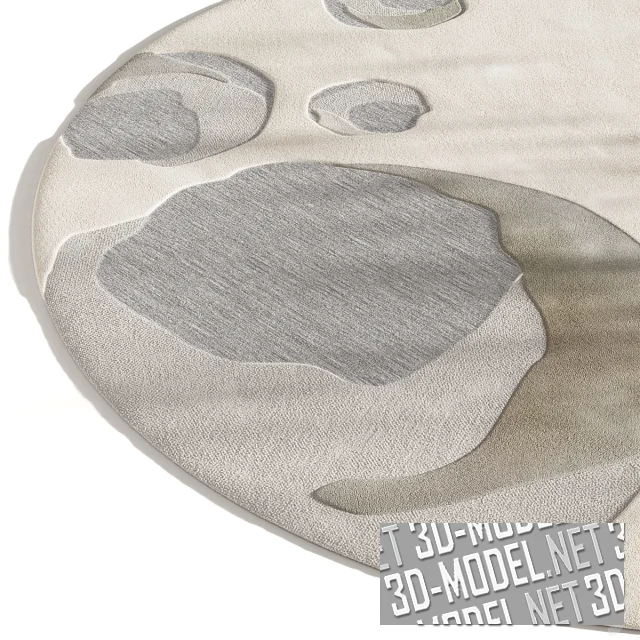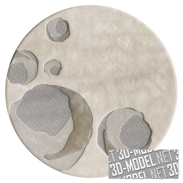 Современный круглый ковер ручной работы Guilin от студии TMJ Design (дизайнер: Terence Mesguich). Выполнен из шерсти и шелка, в оттенках слоновой кости, светло-серого и бронзово-серого тонов. По светлому тону изображены несколько стилизованных рельефных (простриженных) бутона разного размера.