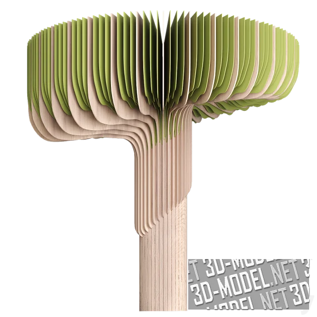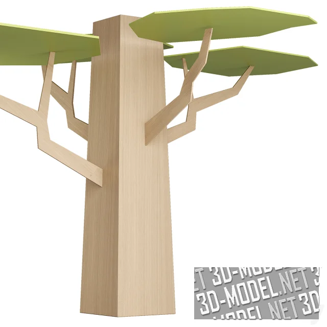 Декоративные объекты для игровой зоны в детскую, для создания тематических интерьеров кафе или общественных пространств для детей, в виде деревьев (3 варианта). Объем конструкциям из плоских древесных плит придается за счет количества элементов и их позиционирования в пространстве. Представленные конструкции скомбинированы из двух текстур: светлого дерева («стволы» и «ветки») и светло-салатовые («листва»).