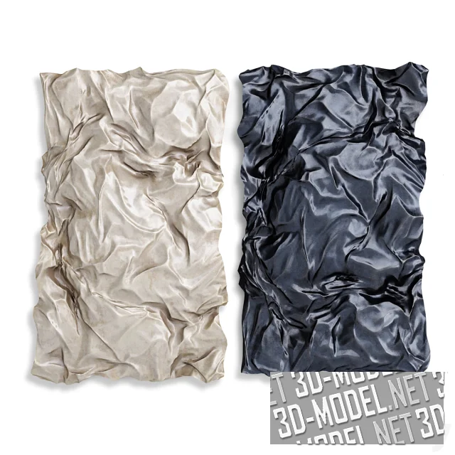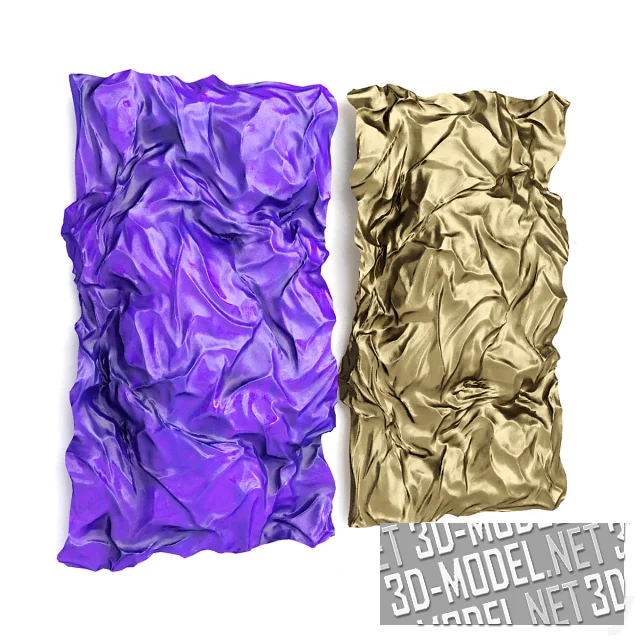 Современное декоративное настенное панно из прямоугольного куска смятого металла. Габарит панели: 91х19,5х148см. Смятые поверхности представлены в нескольких вариантах цветов: слоновая кость, черный, золотистый, яркий фиолетовый.
