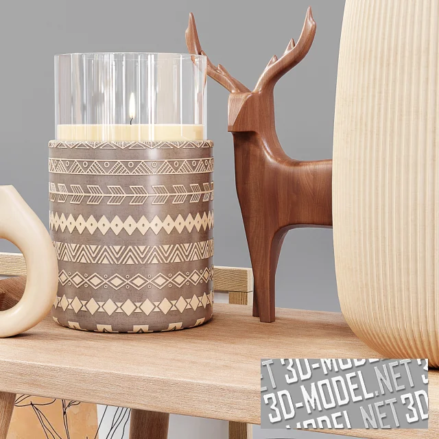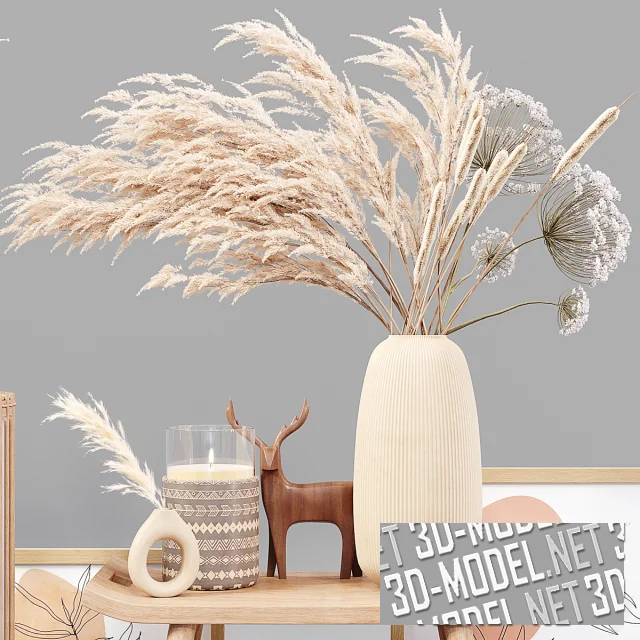 Декоративный сет, все элементы которого объединяет приятная цветовая гамма. В наборе вазы с сухими букетами и без, картины, статуэтка оленя, свечи. Гармония и натуральность делает комплект универсальным украшением и дополнением любой обстановки.