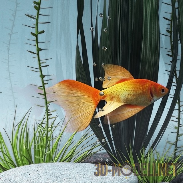 3d-модель аквариума с золотыми рыбками. Такой декоративный элемент, как аквариум, всегда уместен в интерьере – он вносит живительный контраст, свежесть и движение. И эта интересная модель, с текстурами в архиве, поможет красивый и современный создать природный акцент.