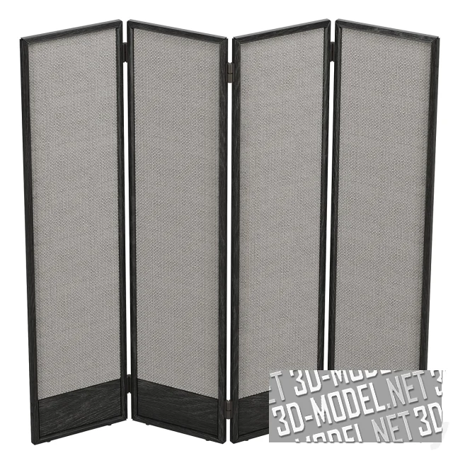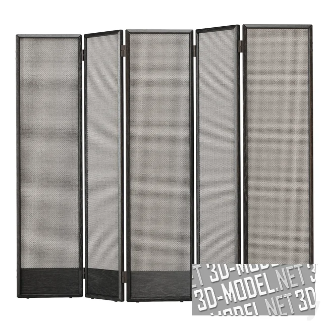 Roberto Lazzeroni). Вертикальные прямоугольные рамки секций изготовлены из деревянных черных профилей и соединены парами петель. Заполнены светло-серым текстилем с крупной текстурой, с панелью-вставкой из черного дерева в нижней части. Габариты моделей: 206х27х180см; 165х27х180см; 123х27х180см.