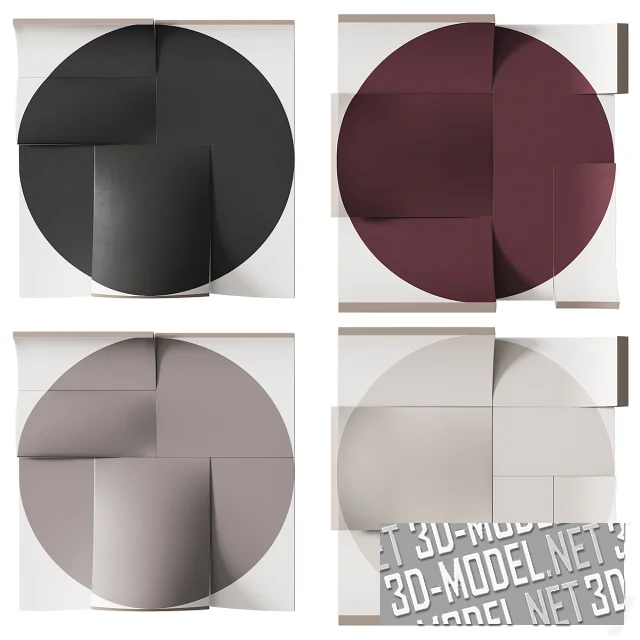 Современный арт-объект отлично подходит для украшения входной группы, общественных помещений или интерьера гостиной, спальни и пр. Эта настенная панель представляет собой абстрактное изогнутое полотно с рисунком в виде круга (представлена в четырех цветовых вариантах). Размеры панно: h = 80 см, w = 80 см, d = 18 см.