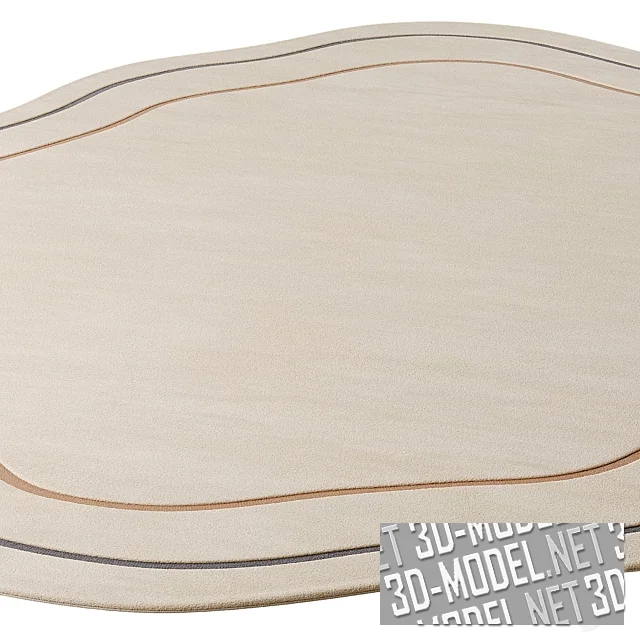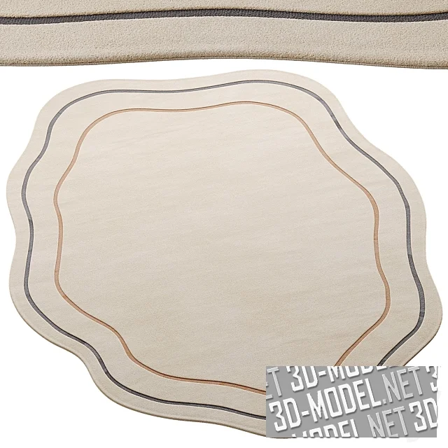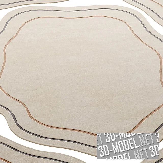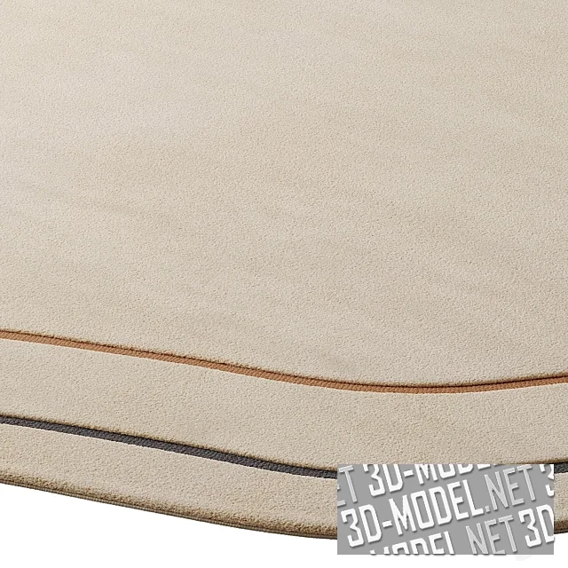 Криволинейный коротковорсовый светлый шерстяной ковер ручной работы - модель Lumi от Design Within Reach. Основной фон - легкий оттенок слоновой кости. Два тонких контура (черно-серый наружный и охристый внутри) повторяют рисунок фигурной кромки. Производитель представляет четыре типоразмера: 152,4х243,8см (5x8f); 182,9х274,3см (6x9f); 243,8х304,8см (8x10f); 274,3х365,7см (9x12f). Толщина ковра - 13мм.