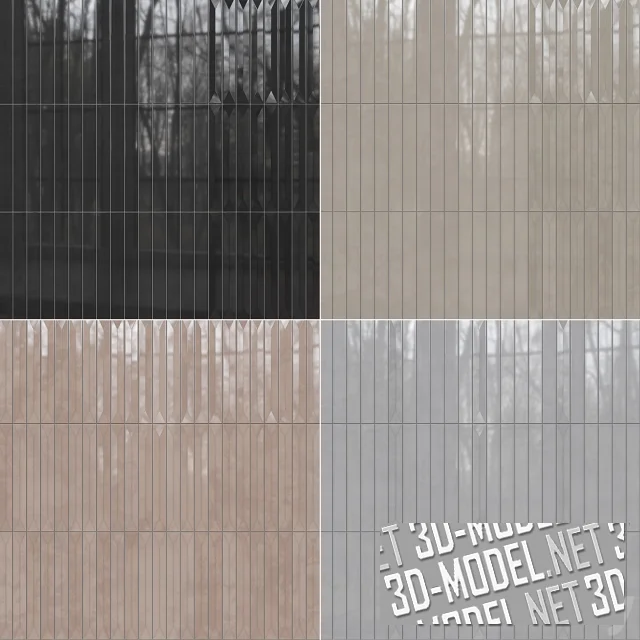 Современная керамическая плитка узкого формата (40х5см) - VITRAL от EQUIPE. В коллекции два типа плитки, плоская и с рельефом, имитирующим фацетированный кристалл с четырьмя плоскостями. Комбинация первого и второго варианта, размещение плитки вертикально или горизонтально, позволяют получить различные интересные варианты в отделке стен.