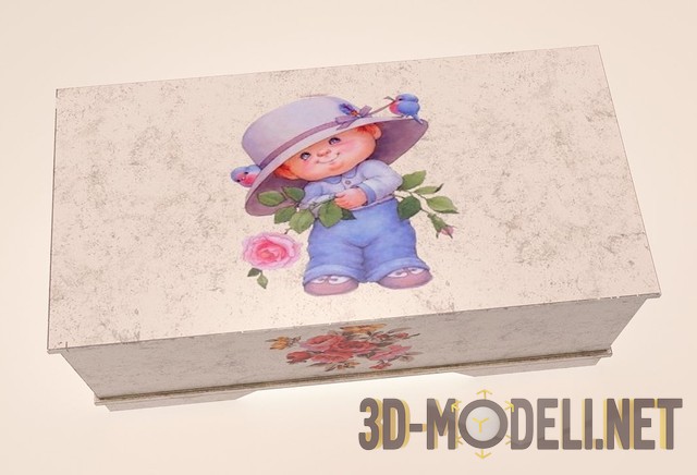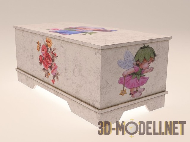 3D модель очаровательной нежно-розовой коробки для игрушек, с букетом цветов и забавными рисунками на крышке и боковинах. При проектировании интерьера детской в стиле прованс эта коробка будет отличной характерной деталью интерьера, подчеркивающей его стиль и своеобразие. Модель с текстурными картами, формат 3ds max, fbx, rendered Vray 3.3