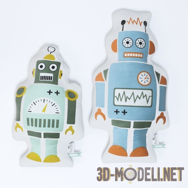 3d-модель детских подушек Mr.Robot от Ferm LIVING. Подушки изготавливаются из 100% органического хлопка, что идеально подходит для декорирования детской комнаты.