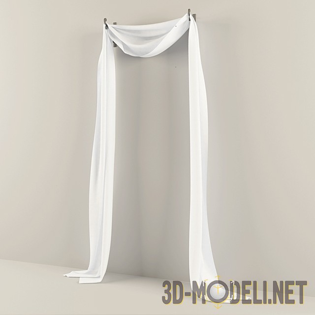 3D модель полога и шторы, висящих на кронштейнах. Обычно такого рода штора используется для декора и зонирования высокого дверного или же традиционно, оконного, проема. Полог, как вариант декора кровати, также смотрится очень эффектно.