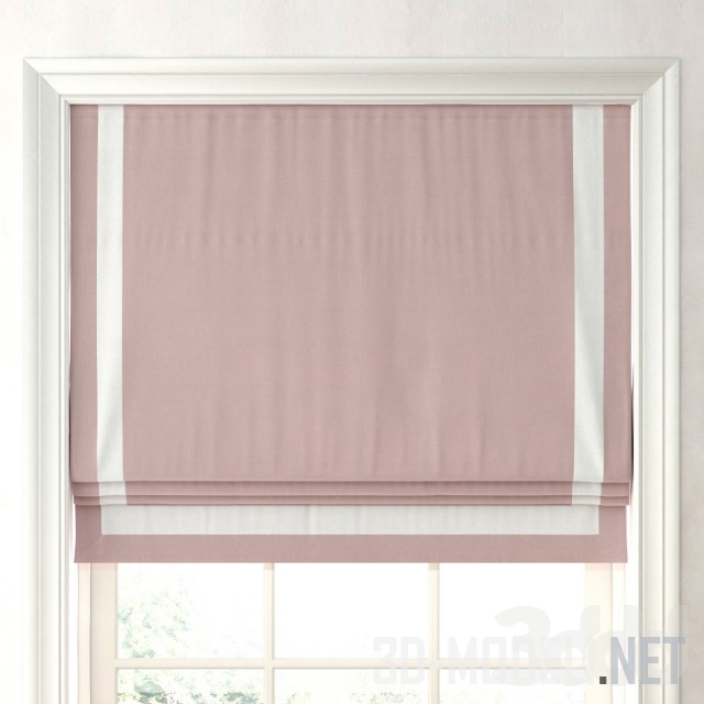 Римская штора от бренда Restoration Hardware, сделана из коттона. Полотна представлены в трех цветовых сочетаниях: белый фон с серо–голубой полосой по трем сторонам, серо–голубым фоном и белой полосой и бледно–каштановый фон с белым декором. Штора подойдет в интерьер в стиле прованс или любой современный интерьер.