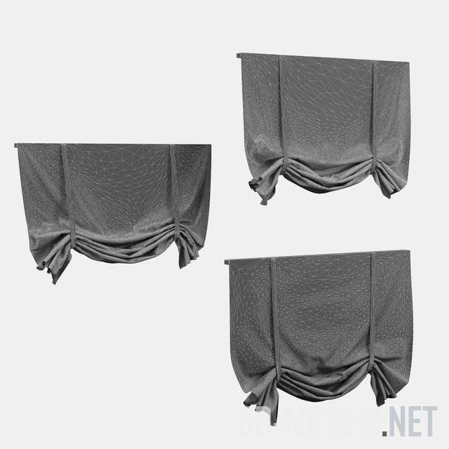 Набор из трех австрийских штор, размер в ширину составляет 1200 мм. Все три шторы собраны по высоте примерно в один уровень. Качественно изготовленная 3D модель с текстурами авторского производства.