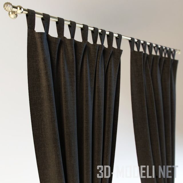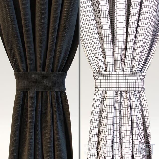 Реалистично выполненная трехмерная модель для оформления окна, штора на золотом карнизе. Штора из плотной ткани, представлена двух типов собранности.