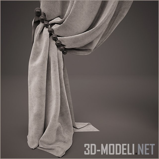 Шторы для классического интерьера, выполнены из красивой ткани, которая позволяет мягкими складками спадать на пол. Одна портьера прямая, другая с подхватом. Реалистичная и качественная 3d модель.