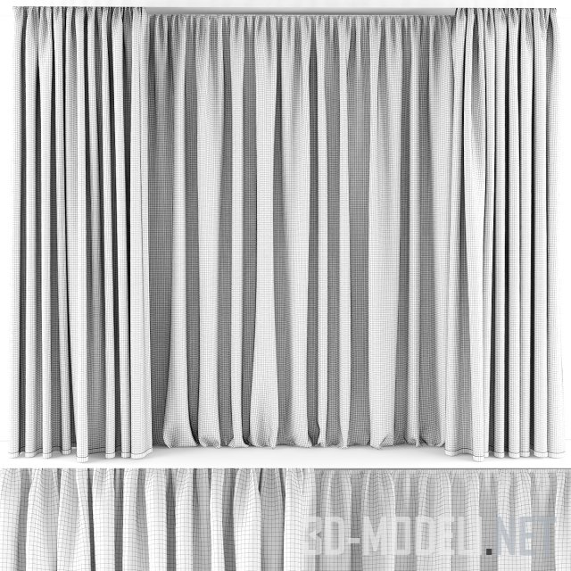 Лаконичный и современный комплект оконных штор, в наборе портьеры и тюль. Модель выполнена качественно и реалистично.