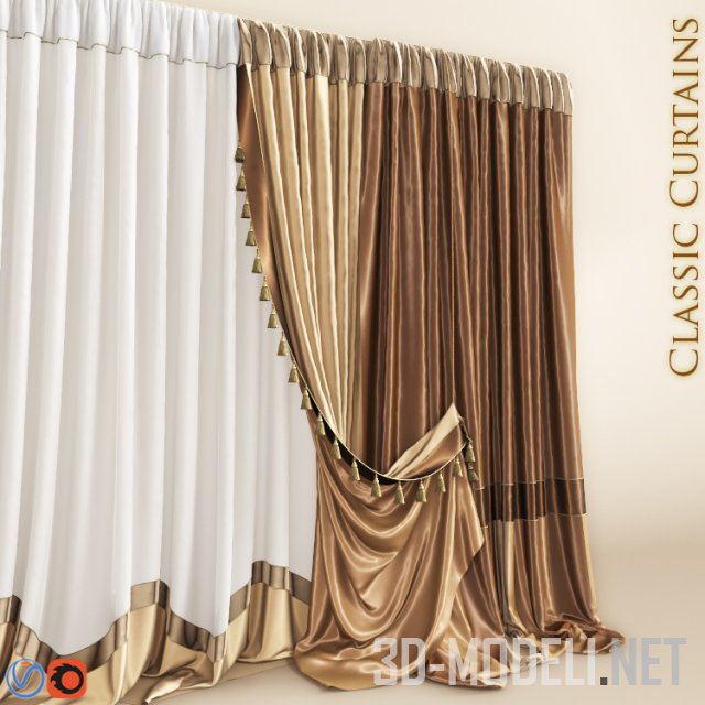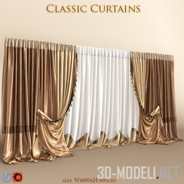 Комплект штор для классического интерьера, размер 600h х 300 см. Шторы отличает комбинация оттенков и декора (украшены кистями), что сделает их нарядным вариантом оформления окна.