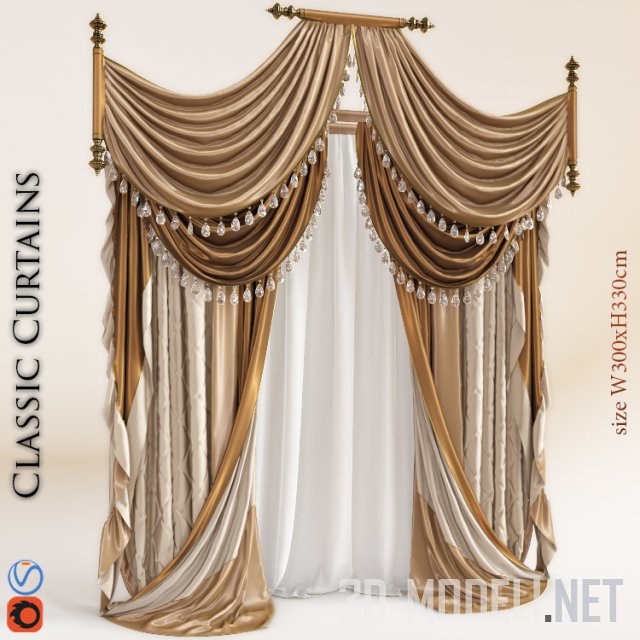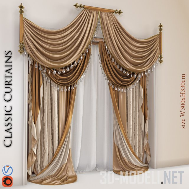 Красивые шторы, выполненные в классическом, даже дворцовом стиле. Очень приятное сочетание цвета штор и ламбрекенов с белыми каплями декора создает нарядную атмосферу. Оттенки цвета от молочного до белого шоколада и мягкие шелковистые ткани производят волшебное впечатление. Штора встраивается в оконный проем. Ламбрекен крепится на стену. Габариты 300 х 330 см.